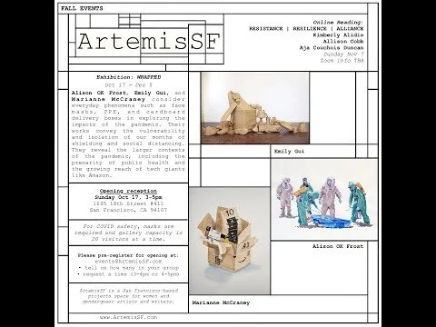 Resistance Resilience Alliance | Reading w/ Aja Couchois Duncan & Allison Cobb, hosted by Mary Burger | Wrapped w/ Alison OK Frost, Emily Gui, Marianne McCraney | ArtemisSF, San Francisco, CA (video)